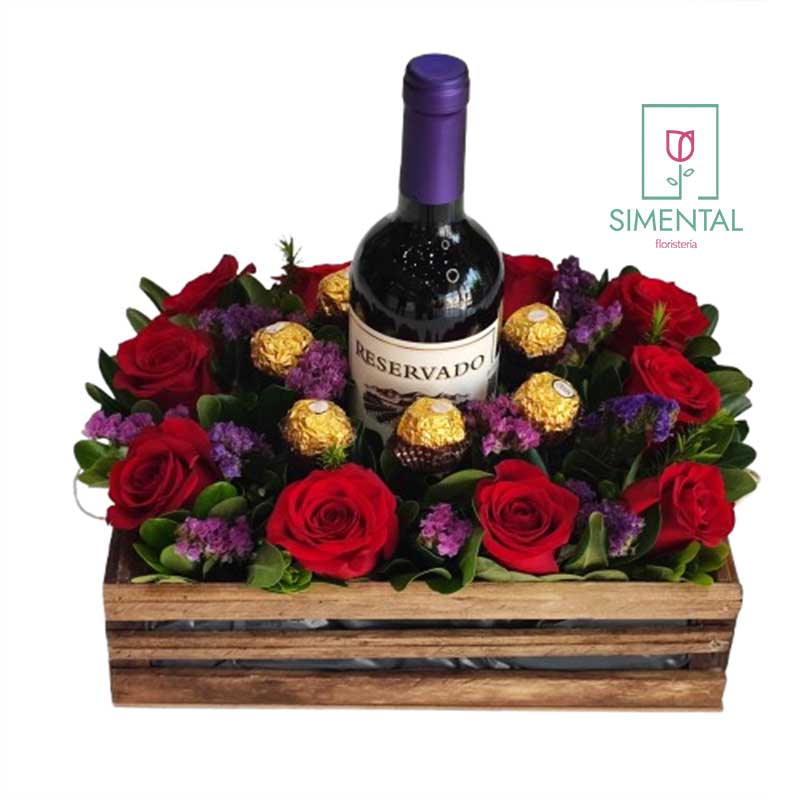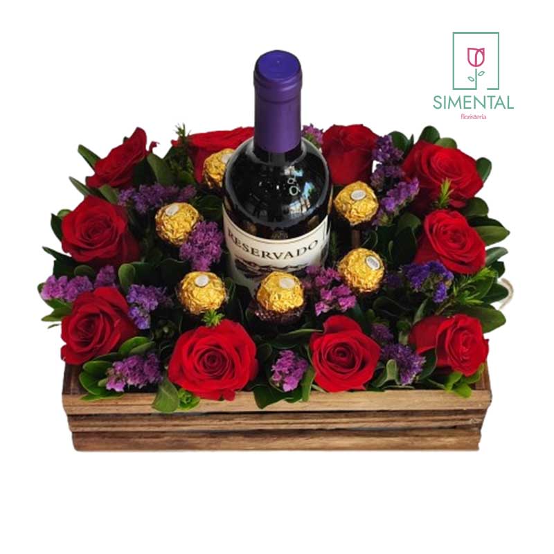 Caja: Reja, Botella, Rosas y Chocolates